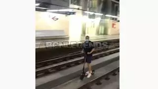 Captura del vídeo on es veu el jove amb patinet elèctric a les vies del tren / Arxiu particular
